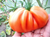 Вкусный и урожайный, этот плод самый крупный, остальные чуть меньше, мясистый.По вкусу чуть-чуть проигрывал Оранжевой клубнике, но как оказалось я просто очень люблю сладкие помидоры.