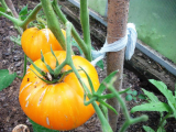 Урожайный сорт, увешан оранжевыми круглыми шарами, а вот получился у меня невкусным, но я уже писала, что в этом году я люблю сладкие помидоры, а этому сладости не хватило.