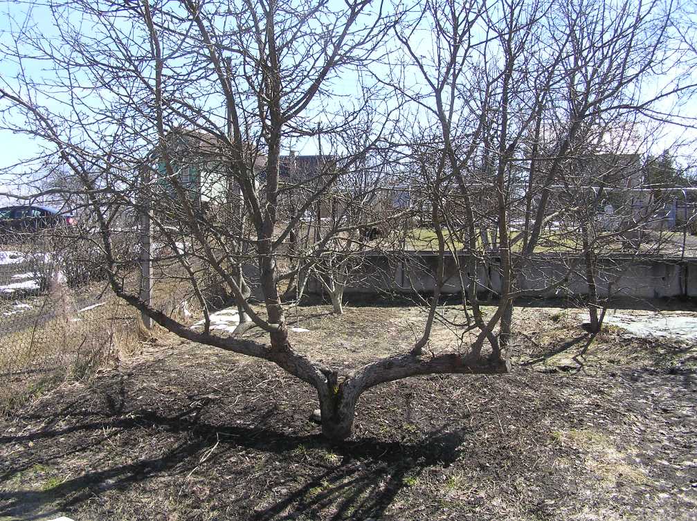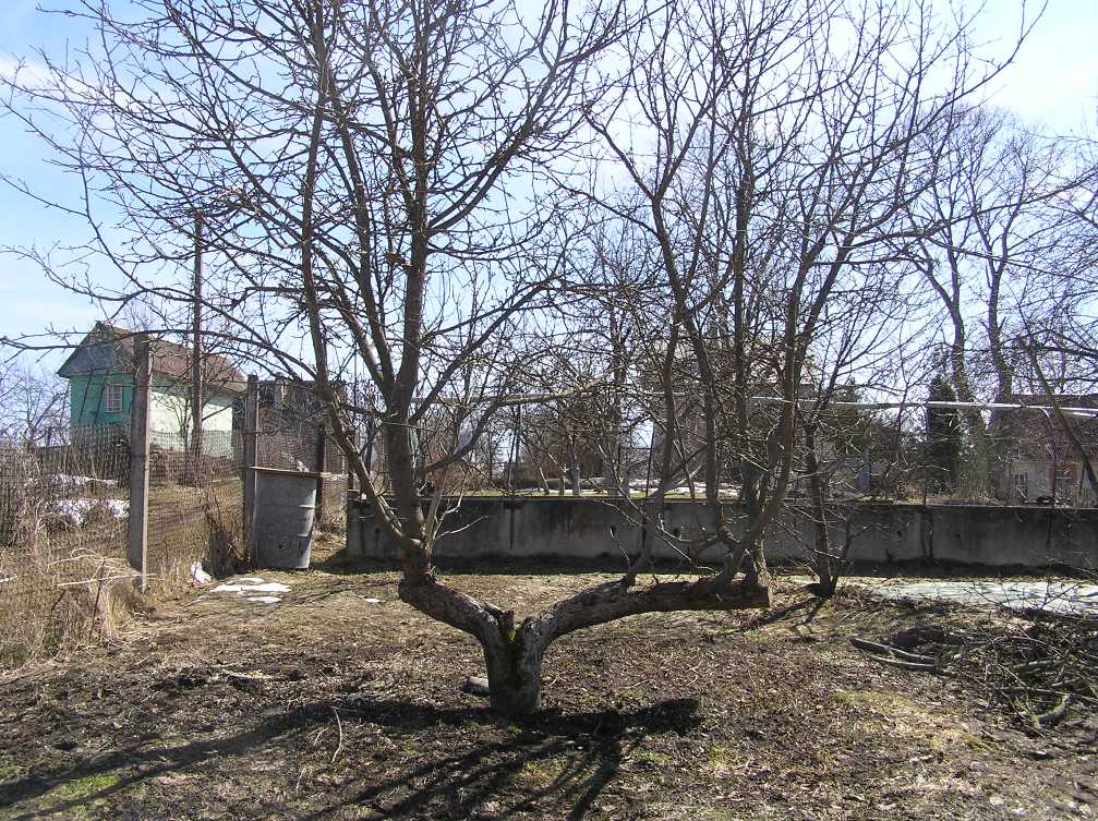 Яблоня сама такая выросла. Когда-то давно-давно  ее сломало снегом зимой,  и она вот так вот  и выросла у нас.