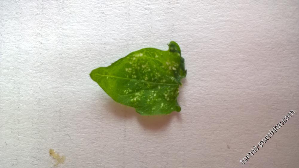 А вот такие листья (это самый кончик) у томата,не на всем растении,а также у некоторых перцев...это от чего? Никаких животный в лупу не видно. Стоят на окне. От солнца вряд ли-на западном... :o