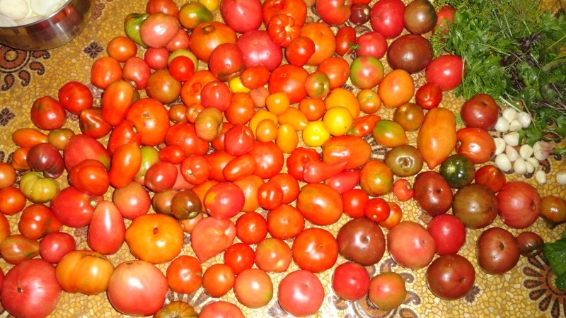 Урожай был бы не то слово, помнишь зимой смеялись "Пойдем продадим?", а особенно по поводу Эроса? Я уже настроилась и для меня это уже было не проблематично, тем более кого угощала, просят томаты, а нет, я ведь не ворую и почему бы свой труд не продать. Если бы погода была бы такая, как в том году, можно было бы грузовиками вывозить. Томатов очень много, но больные, даже семена не соберешь. Я не хочу рисковать, сеять семена от больных томатов, а потом охать и ахать. Да ну их, в болото. Уж умерла так умерла.