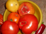 У меня томаты прут ввысь, как у Леры некоторые переросли свои колья, в особенности Кардио и ЯЛ. Сегодня попробовали Розовый мед от Редько, он плоскоокруглый, а не сердцевидный. Очень понравился на вкус- сбалансированный с выраженой сладостью.