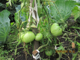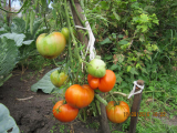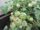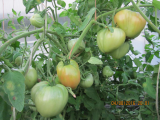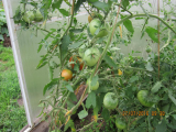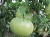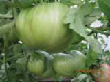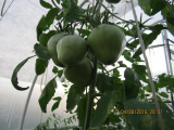 «Сибирский великан». На одном кусту было 2 кисти с крупными плодами, на второй 3 кисти, но третья кисть - плоды были мельче почти в два раза. Завязей на пасынке не допускал, обрывая бутоны и ………..точку роста удалил ( завершковал) после начала созревания плодов на первой кисти. Дождаться даже бурых плодов на третьей кисти не удалось, т.к. был уже конец августа и ночи стали относительно холодными (до +8).