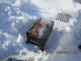 На улице солнышко, -19, мангал в сугробе, хорошо хоть ветра нет