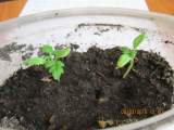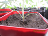-Когда растение само решит избавится от семядолей, а это будет примерно на паре 5-6-го настоящих листьев, то они отомрут без образования раны. Тогда я подниму часть стаканчика (он у меня раздвижной) и подсыплю землю.