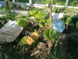 Друзья, и особенно виноградари, подскажите, что с виноградами? Все 3 начали болеть еще дома. Хотя стояли в разных комнатах. Режим полива был правильный. Листья становятся неоднородного цвета, с высветлениями между прожилками, а потом сохнут и коричневеют. Каждые выходные обрываю. Пока росли дома, не подкармливала, думала, может не хватает питания. Высадила с месяц назад в теплицу в заправленные лунки. Но процесс продолжается. Неделю назад на одном листочке снизу по прожилкам обнаружила микроскопические черные точки, подумала, что какие-то сосущие насекомые. Но на остальных светлеющих или сохнущих листьях их не было  :dnt: Обработала фитовермом в прошлые выходные - не помогло. В эти выходные ХОМом.
