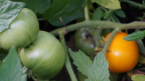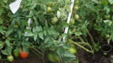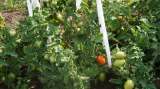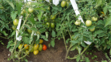 Видно, что на одном кустике поспела одна помидорка.