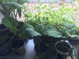 Последнюю неделю я всё расстраивалась по поводу томатов: во-первых, их начали жрать двухвостки, во-вторых, холодрыга стоит и они всё у меня были в задумчивой фазе, т. е. некоторые не хотели всходить.