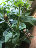 Первой в этом году расцвела бледно-жёлтая петуния из смеси: "небо и солнце", а на первом плане баклажаны, на которых периодически веду отлов белокрылки (последние 3-4 дня никого там не видела):