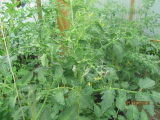 А вечером , как перестал дождик, пошла посмотреть как себя чувствуют мои растюшечки. В теплице все лежали  :o, кто от "дай попить", кто "подвяжи меня".  Начала подвязывать, веревки все перепутаны с прошлого года, в куче и короткие и длинные. Потом пасынковала, пасынки снизу уже полноценные кусты стали :- Всех вырезала! Ну и полила.