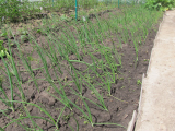 Лук из семян Эксибишен. Вроде пошел в рост. Вчера несколько штук попробовала. Очень отличается от обычного лука. Более нежный и не такой острый.