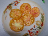 Очень вкусным оказался томат Сладкое чудо, название полностью себя оправдывает :niam: :niam: :niam: Описать вкус не умею :-[, там и сладость, и кислинка, и еще не знаю что)), слопали втроем( муж, я и подруга), всем понравился