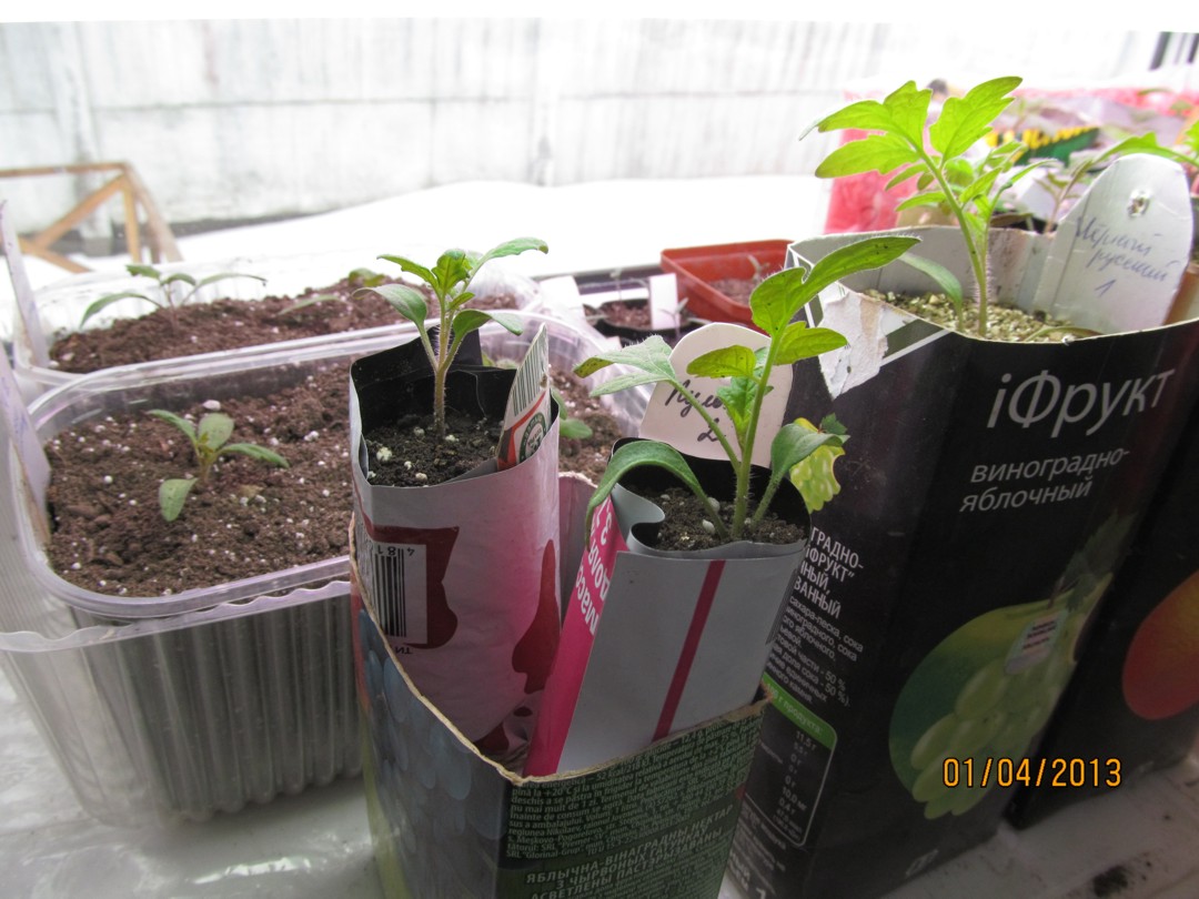 При перевалке клала на дно коробочки после дренажа по 5 горошков Исполина (по примеру Помидороведа). Раньше так не делала, посмотрим, как помидоркам понравится эта еда. А сверху, после полива, насыпАла в коробку по столовой ложке вермикулита, чтобы земляная корка не образовывалась (ну типа мульчи).