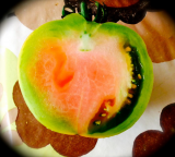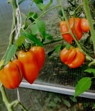 Экзот -Голубой лес, в росте просто монстр :o :o из удаленных  пасынков, успевает за неделю вырасти полноценная кисть, если бы я его не резанула  верхушку, то оплел бы всю теплицу :P :P :P Вкус  стандартный, томатный... но красивый и урожайный ;) ;)