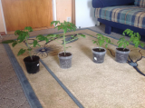Площадь освещения-9 кв м. Рассада стоит на столах и частично на узких полках вдоль стены так.что ничего не затеняется.