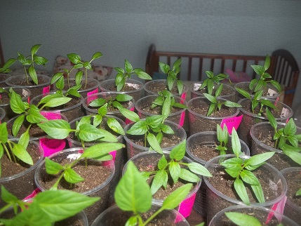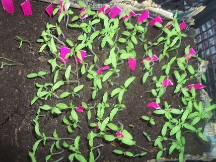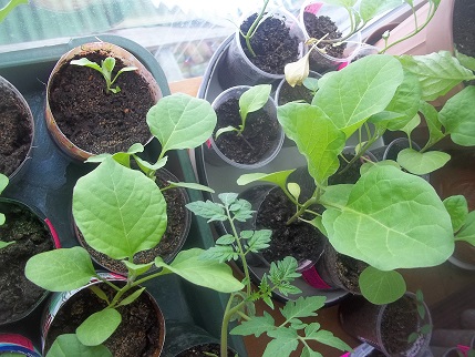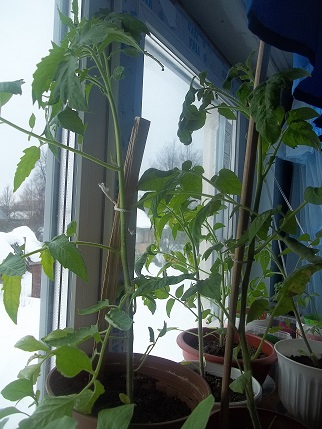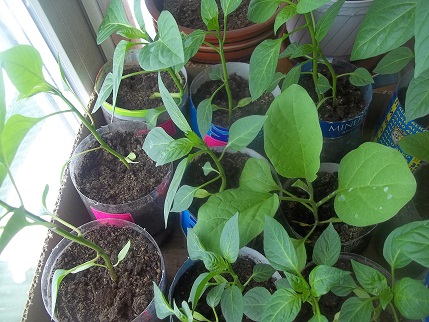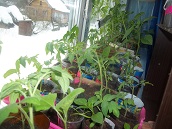 Наконец то вчера посеяла Гусевские томатики, а помидорки посеяные 13.03 достаточно дружно взошли.больше всего порадовал сорт Дон-Жуан- семечки 2003 года, но из 10-взошли 4 штучки( думала совсем не вылезут). А вчера кот-засранец взял и написал на помидорки-то что осталось пришлось пересаживать, добавил работки.
