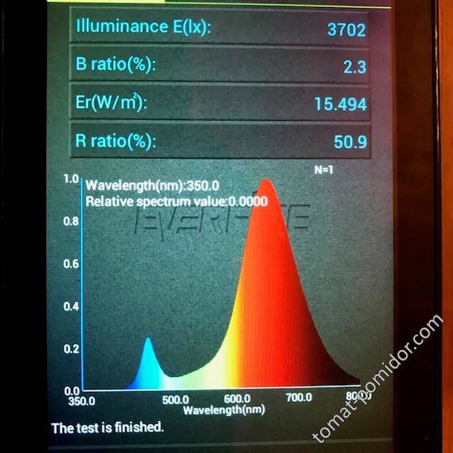Как смог понять, это обе половины в полном режиме. Синего в очень узком диапозоне больше единицы. Красного максимально 0,3 единицы, не плохо захватывает широкую зону красного, но она меньше 0,2 единиц. И практически отсутствует зелёная зона, она меньше 0,05 единицы. Можно применять в присутствии  белого  дневного естественного в качестве добавки где не достаточная освещённость. В полной изоляции от естественного света не годится, можно добавить нетральный белый на 4000 К с двойной мощностью от этих ламп.
