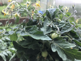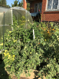 5.Голубая прелесть(от Светы azure) - Из описания - индет, 1,2-1,5 м, пл. плоскоокругл.,  до 150гр, вкусные, содержат антоциан. По факту: в прошлом году сажала в ОГ, был неплох, но… Короче, в этом году посадила в огуречник. Вот тут он развернулся!! Вырос под крышу, цвёл и плодил, как подорванный! А помидоркиии!!! :niam:  Вот только в этом году поняла восторженные отзывы о нём!