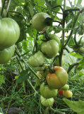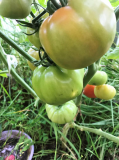 10 Изумрудная груша (от elena1984) - Из описания - Высокорослый зеленоплодный урожайный сорт. Рос в теплице в 2 стебля. Плоды-грушевидные сосульки около 60гр, сочные и сладкие, очень вкусные! По факту: В прошлом году рос в ОГ, в этом – в теплице. И в ОГ, мне кажется, ему понравилось больше. А помидорчик замечательный, сладкий, почти без кислинки.