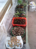 да,и три вида какой-то петунии,дорогой,по 89 рублей каждая...по 10 зернышек в ампуле...Я каждую гранулу в отдельный торфяной стаканчик опредедлила и в пластиковый парничок(,ну то есть в стакан одноразовый торф насыпала,утрамбовала и кипятком пролила...)