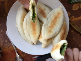 Девочки, угоститесь постными пирожками с зеленью. Вчера делала. Девочки, ну вот правда, первый раз что-то с дрожжами замутила, и получилось!  :mail2: :mail2: :mail2: