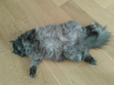 Шарки сегодня попал под огонь - наступила на него в ванной, потом поспал - смогла сфотографировать немного. Начали страдать обои - угол перед кухней уже поплыл. :-