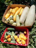 Кабачки и патиссоны. Ну тут слова излишни, эти мои любимки :-* Радуют мамку как могут.  Три куста Кавилли, 3 Ясмин и 2 Суха (я все таки нашла их отличия :appl:) Суха пока что выдал только 2 кабачка. Кавилли прет. На будущее все таки 8 кустов наверное мне много :-X