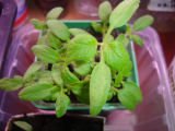 Один росточек томата Dwarf Kelly Green/Келли  зеленая отличается от остальных. Листики у него похожи на картофельные. Хочу понаблюдать, как будет развиваться, что вырастет.  Никак не соберусь рассадить этот стаканчик, так как вроде бы эта рассада уже и не нужна. Два  гнома уже растут в отдельных стаканчиках. Теперь хочу подождать, может,  такие же листики будут  еще и у других  росточков.  Может,  наоборот,  этот поменяет форму, разделится на доли.
