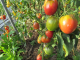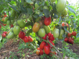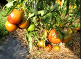 Пурпурное сердце Рейнхарда Крафта. Вкусный помидор, но только у него одного в этом году была заметна нехватка калия - плотная зеленая попка  ;D. Дома в ОГ такая же фигня и только на нем. А может это сортовая особенность.