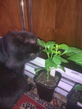 Маргоша гурманничает. Похолодало, занесла с балкона рассаду. Решила не жадничать, сорта из повторно посеянных отдать Маргоше на съедение, а то ходит кругами около ящика, как бы "ценный мех" мне объела.