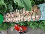 И опять себе в память:- Собираю садовую крупноплодную землянику раз в 2 дня(как впрочем и мелкоплодную ;)). Собирала в основном 8-9 литров. В субботу набрала 12 :hey:. Решила что это пик, дальше пойдет на убыль. А сегодня опять набрала 12 литров :o, наверно за счет того, что все же гнилой поменьше стало, погода жаркая, а дождики были кратковременные ;). Мелкоплодную не успела собрать, завтра придется- если тоже успею. В планах переработать то, что уже набрала. Сейчас весь холодильник ягодами забит. Хочу компотов еще накрутить и с сахаром наморозить. Вот только хватит ли места в морозилке... Сегодня муж вернулся с удачной рыбалки- ведро карасей наловил, причем довольно крупных! Уже все почистил и в морозилку затарил!  :)