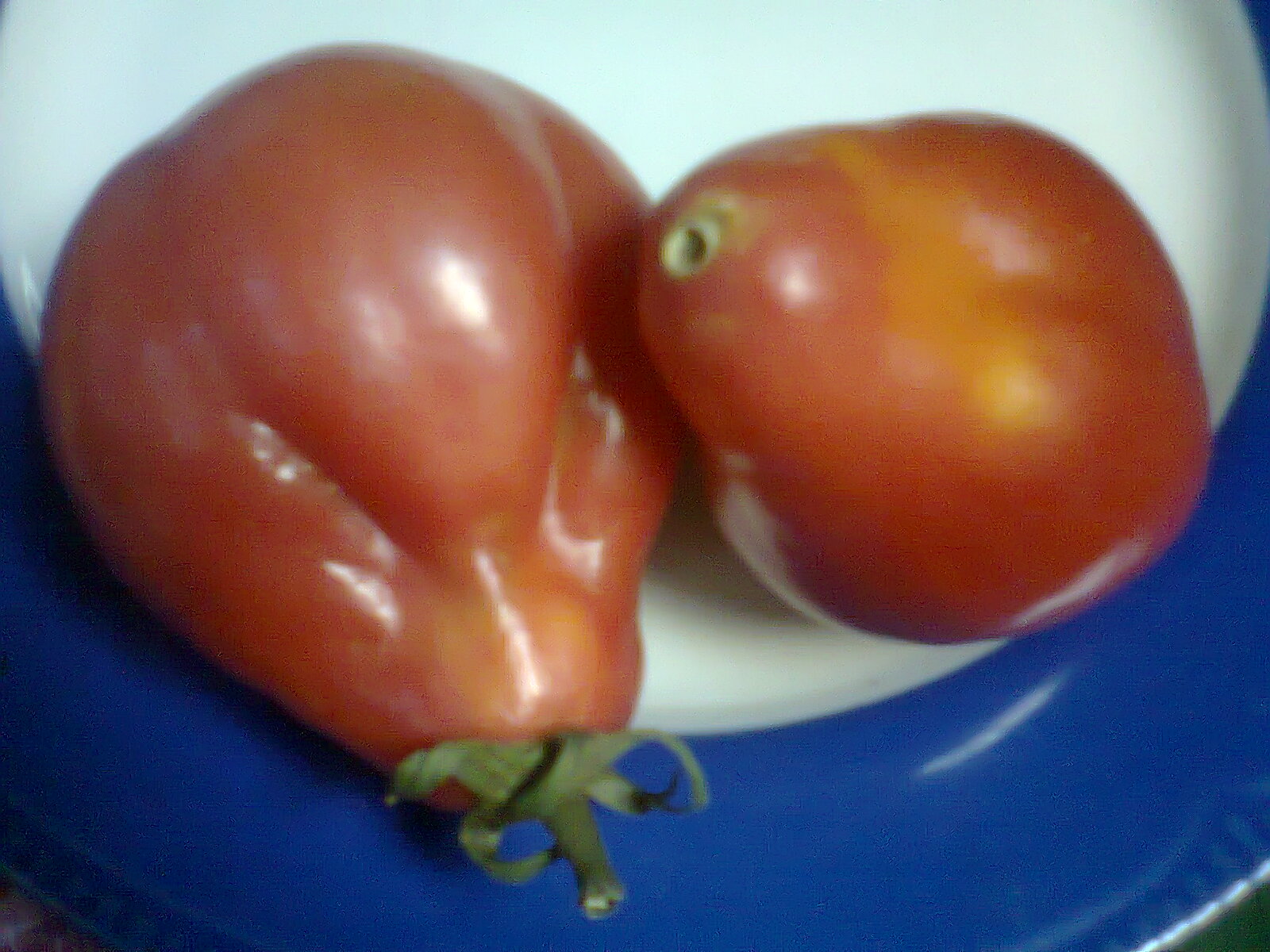 У меня созрела Дикая роза и Малиновый слон. ДР- мясной помидор,дозаривала на подоконнике,чуть с кислинкой.М.Слон ещё не пробовала.