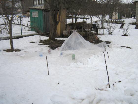А грядку с дынями и арбузами слегка зачернила золой, чтобы снег скорее стаивал.  :D