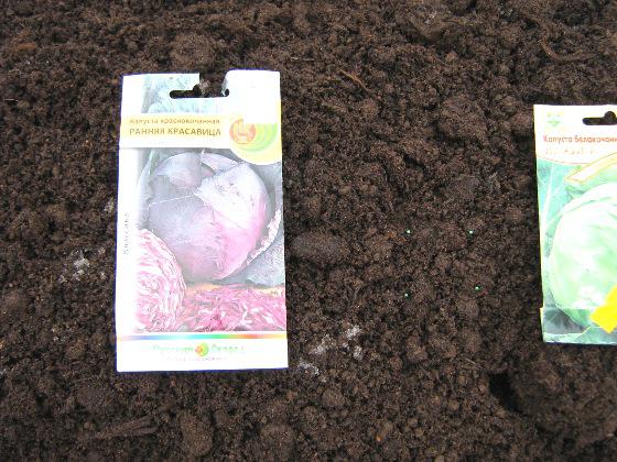 Моя первая грядка в этом сезоне. Капустку сухими семенами посеяла ... на выживание.  :-X