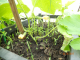 Высадила всех: в теплицу двумя способами - Светланы Семечки(V -образно через 30см в грядку шириной 88см) и Валентины54 (гнездовым способом с 70см проходами); - обе грядки усилила ранними томатами ( первым у меня зацвёл Светланин томат Такси  :-*).