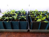 Пикировка в ЭМ лотки. Нравятся они мне. Эксперименты не проводила, не знаю как уж эта ЭМ пластмасса влияет на растения, но то что они очень удобные, это уж точно. Аккуратно разбираешь их и достаешь целый ком земли. Если оставить крайние и средние перегородки, а промежуточные убрать, то получится 4 больших ячейки и они достаточно глубокие. При случае, куплю ещё.