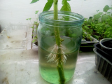 Кустик сорта Бельмонте,который тоже заболел,поставленный в воду 26.05. уже отрастил корни