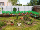 Вот и у меня такой забор сосед поставил. Снизу решетка для вентиляции, через полметра профиль. Хочу сетку натянуть и клематисы посадить.