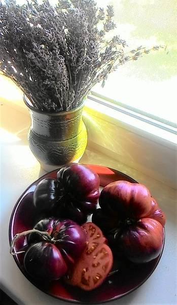 Вот Убеждение. Во всех описаниях он некрупный, а у меня вырос очень даже крупняк......хватилась сделать фото, а уже 3 помидорины осталось......растащили на сувениры. Семян собрала, всех убедим.:smile219: