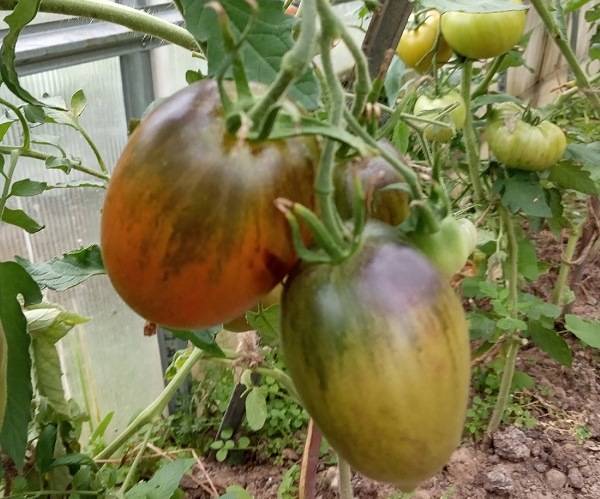 Надо сказать, что в начале сезона мне Ругантино не понравился. А вот сейчас я кардинально поменяла свое мнение о нем. В теплице у меня кладоспориоз сильный. Без болячки стоят кусты Ругантино и Сосульки черной. Только они. Вкус у Ругантино сейчас очень хорош. Я бы могла его сравнить со вкусом многих сортовых томатов. В жару вязал у меня плохо, а вот когда жара прекратилась, начал вязать как бешеный.