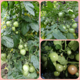 В первых числах мая , высажен в грунт, под временное укрытие .Первенцы созрели в конце мая .Рос и вязал , в начале июня порадовал ещё спелыми .Размер с грецкий орех .Затем активно стал набирать стебли и вязать вязать. На данный момент активно наливает плоды , намного больше заявленного .Весь облеплен томатиками, кустик раскидистый  .Высота 60 см