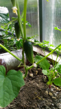 Подвязыла виноград,убрала всё лишнее,подвязала арбузы,дыни пощипала.Перцам очень жарко,цветут только острые.На огурчиках малышики растут.