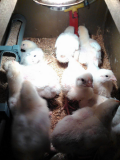 Это мы с первой самой партией носились, чуть не спать укладывали. А потом уже как конвейер. Головы не рубим - негуманно, просто ножом, они засыпают и вокруг все чисто. Никаких привязанностей, они живут 40-45 дней и все. Даже дочка (6 лет) спокойно относится к процессу: вывели, вырастили, зарубили, съели. Ест за милую душу. Да, возможно, кажется, что так жестоко. Ну а как еще мясо достается? Стать веганами? В Сибири?