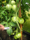 До 250гр наверно плоды будут. ОГ у меня почти нет везде газон  :-[, так что растет в перечной теплице. Как формировать - не знала, сначала оставила все пасынки и наблюдала. Показалось, что индет, оставила три стебля, остальное удалила. Внизу хорошо завязал, а потом жара и  цветы на трех кистях не завязались, верхушки стеблей стали медленно расти и истончились  :( Не стала его дальше мучать, обрезала все три стебля, чтобы не затенял растущий позади него Сержант Пеппер (ему для набора синевы на плодах многа света надо  :hey:).