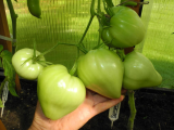 С вечера и с 6 утра стригу листья, а кое кому и верхушки в теплице (пока не сильно жарко). Нижние 1-2-3 кисти у большинства сортов хорошие. А дальше кирдык - сухие соцветия или с 1-2 плодом. Больше всего пропусков у плоскоокруглых и сердечных сортов. С минимумом пропусков вяжут сливки типа Топклипсы, Санта Круз, Русской красавицы и Де Барао, мешочки типа Желтых торбочек и сосульки типа Паскаля Пикарди, Ниагары, Розовой сосульки и Полосы молнии. Позже ещё рядок постригу, проверю других фаворитов.