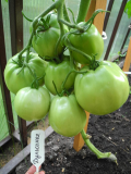 Вчера весь день стригла теплицу, потом пофотала то, что нашла внутри кустов  :D и удобно было сфотать. А к некоторым кустам пока не подступиться, плоды прячутся от меня или у стенки во втором ряду.