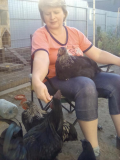 Лена,привет! Рада видеть!!!спасибо за фотки! У нас ручная курочка была у бабушки,когда ее видела,первая бежала навстречу,а они ж когда бегут,да еще торопятся,еще смешнее становятся,и на ручках тоже у нее сидела,бабушка с соседкой у сарайки присядут, а курка  сразу к ней на ручки взлетала,но у нее простые белые были.