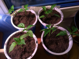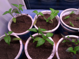 Короче, пересадила всех в 0,5 с землей ("Микропарник + своя дерновая + биогумус + зола + вермикулит), отсечку из бумаги перевесила так, чтобы тепло от кухни попадало к перцам, стаканы отсекла от стекла подложкой под ламинат.
