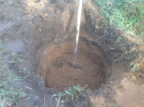 На сегодняшний день есть 2 ямы (надеюсь завтра третья будет) размером 1м в диаметре, 1 м глубиной.