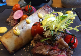 После рынка забрали Андрея-младшего с олимпиады и поехали в ресторан "Pull". Когда он открывался, был совершенно бесподобным. Попасть можно было только по записи. Теперь народу там мало... есть, но без фанатизма. Еда стала средней.... Исключаем его из списка обязательных к посещению. Но несколько фотографий, все же, есть....